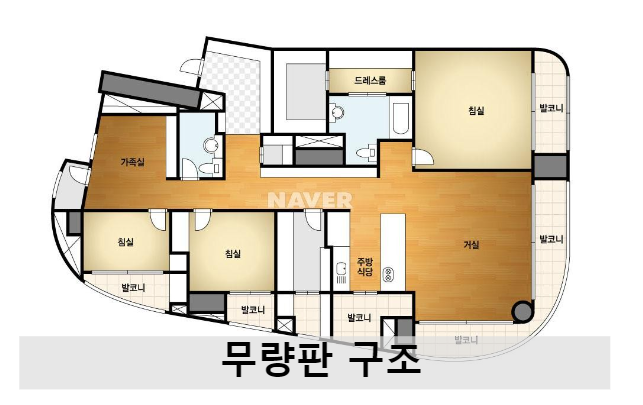 그래서 무량판식과 기둥식을 구분하는 가장 쉬운 방법은 해당 아파트의 이름을 검색창에 입력한 후, 제공되는 평면도를 확인하는 것입니다. 무량판식 구조라면, 평면도에서 회색 음영의 사각형이 중간중간 보이게 될 것입니다.